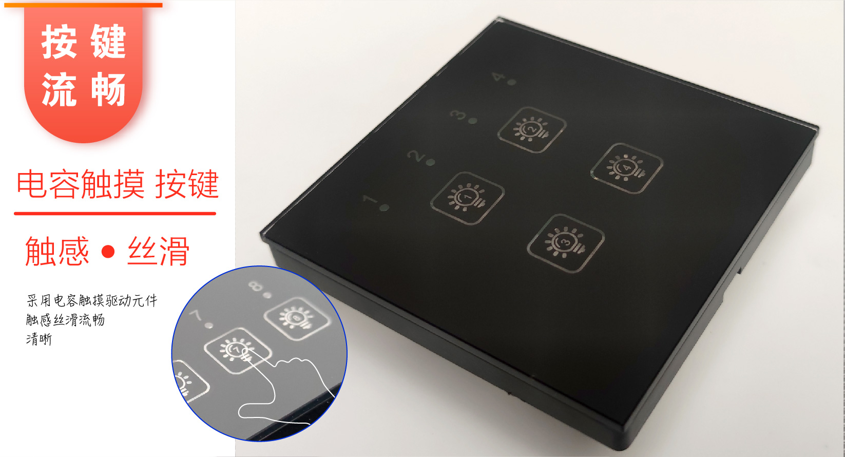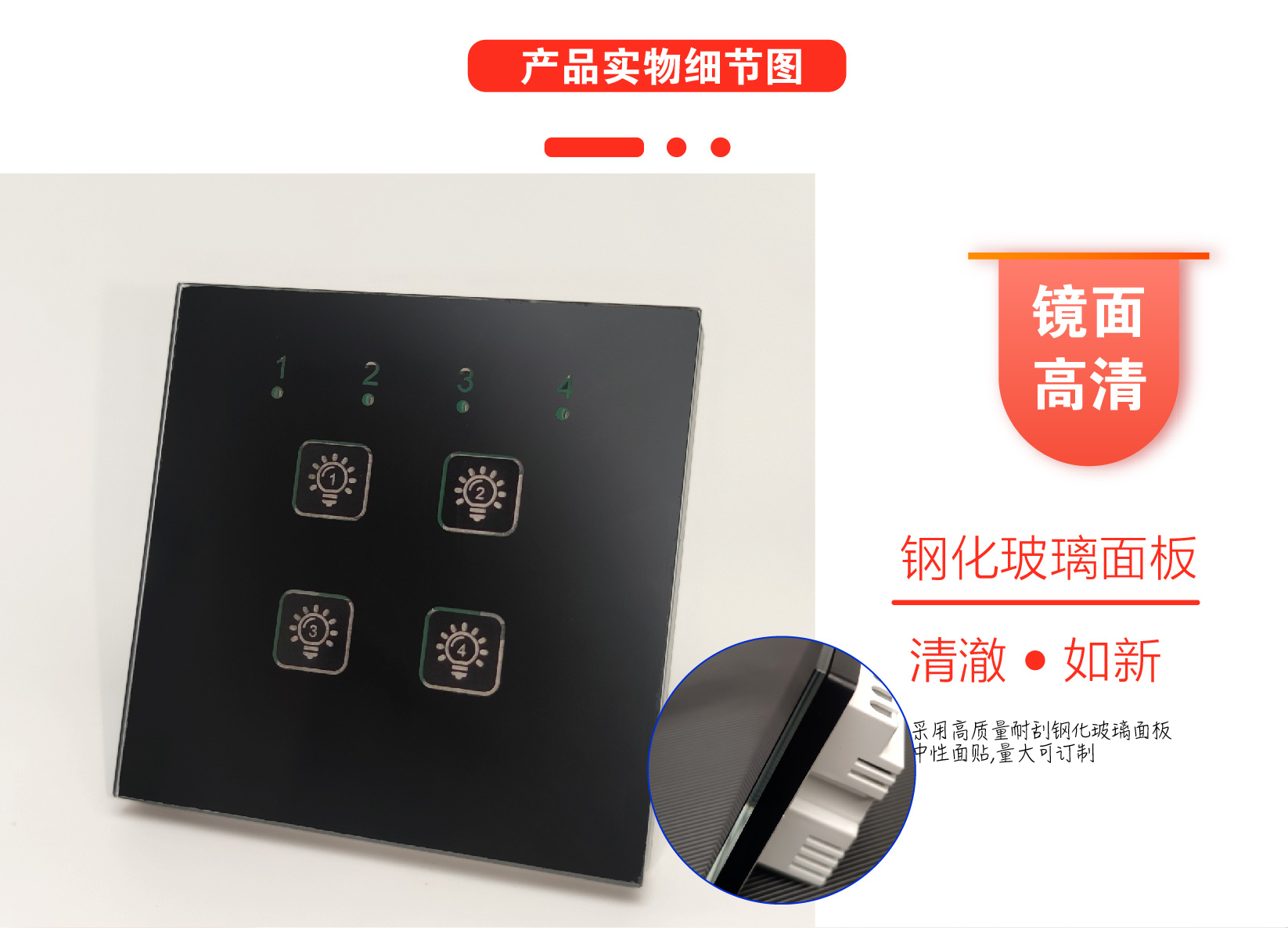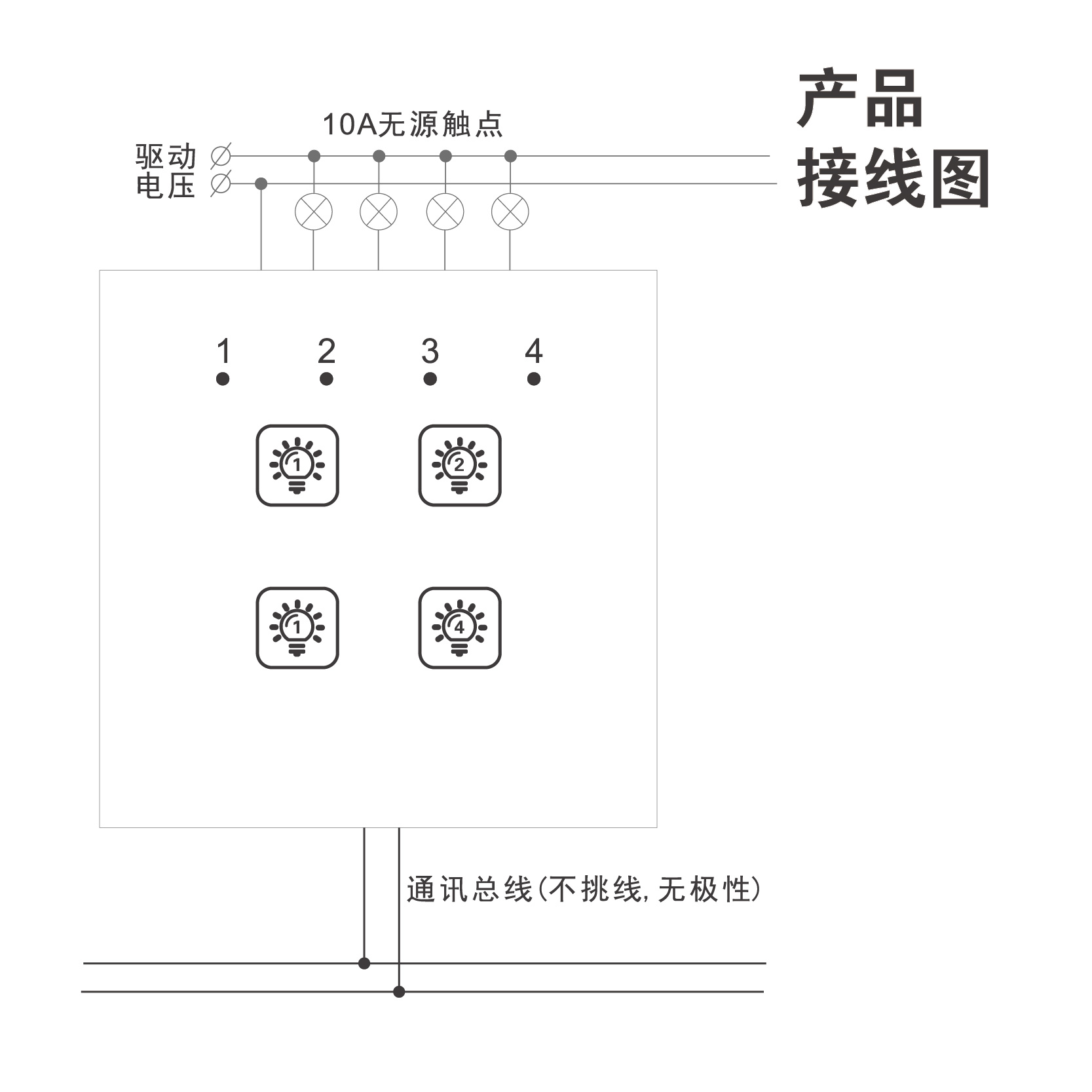 | 产品概述 | Intelligent Lighting Switch Panel | 4路智能照明控制开关面板带模块 |
